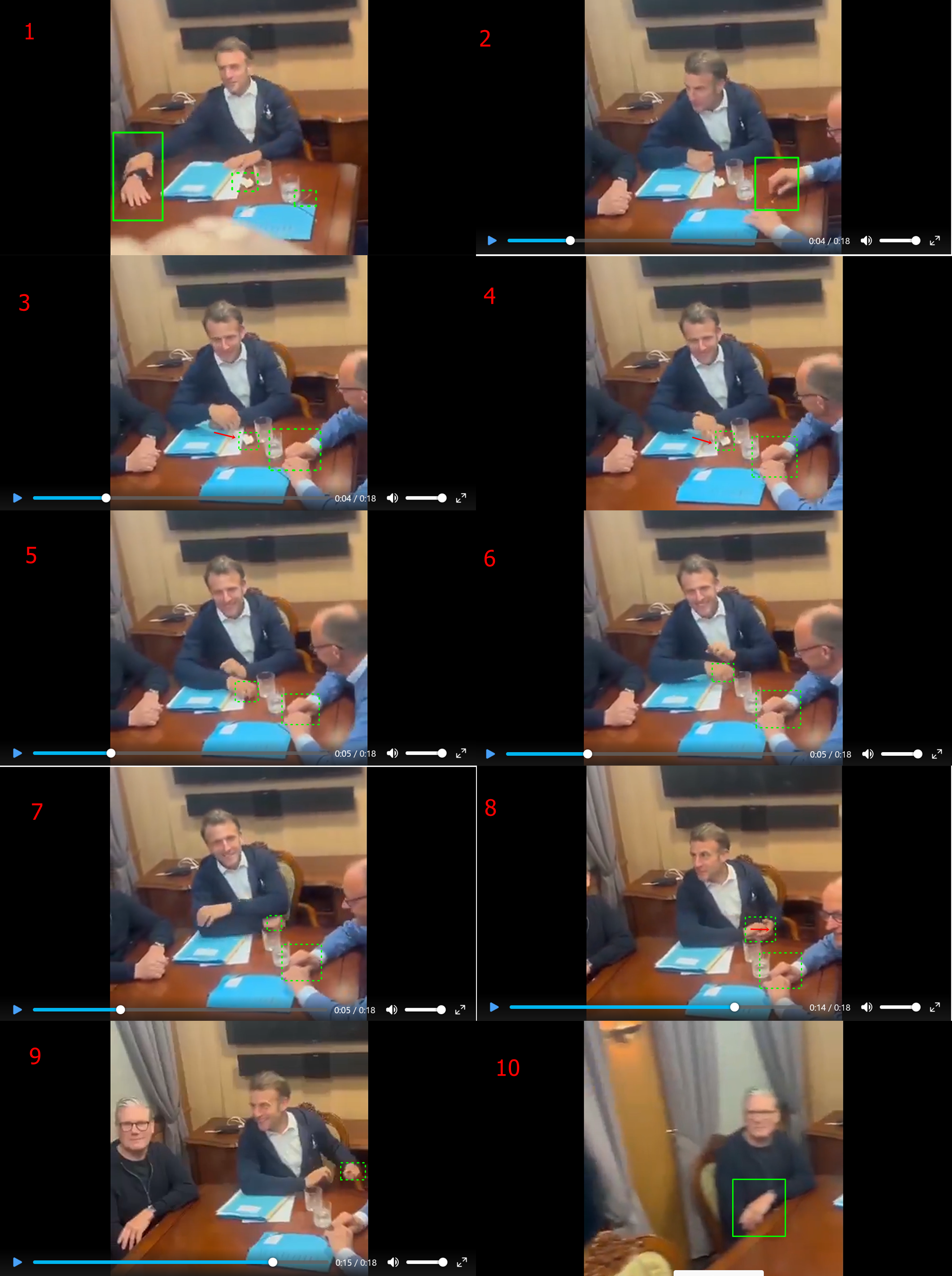 動画の各画面(解像度が悪くて恐縮ですが)・・・・特にマクロン氏の一連の動作。??と感じた部分を切り抜いてみました。