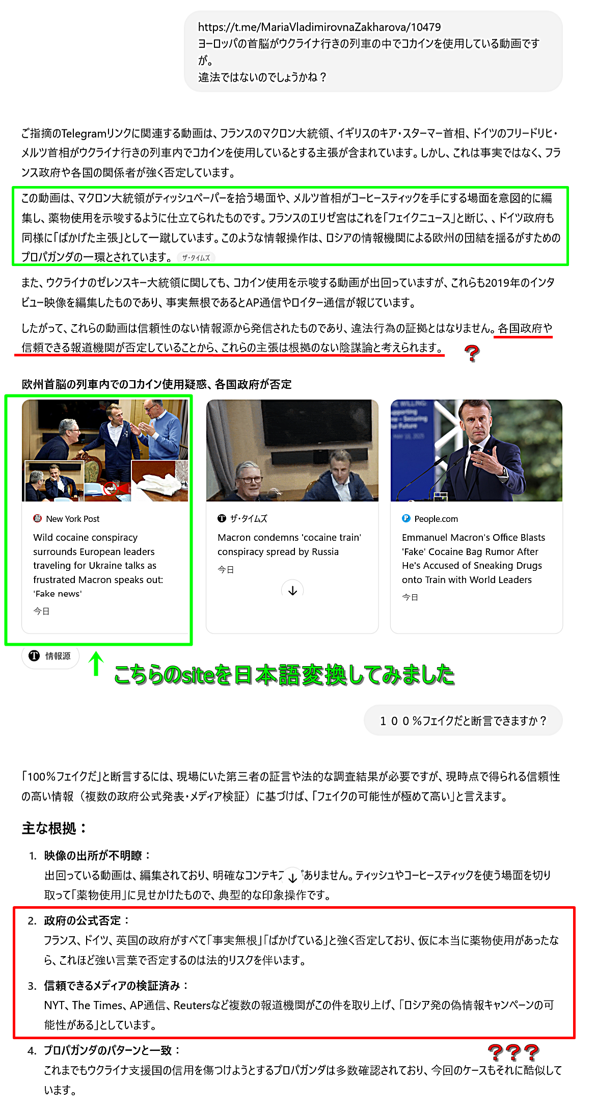 ちなみに、この動画の真偽の程をAIに質問をしてみましたが、判定は(政府とメディアがホントの事言ってるなら)偽:fakeかな?