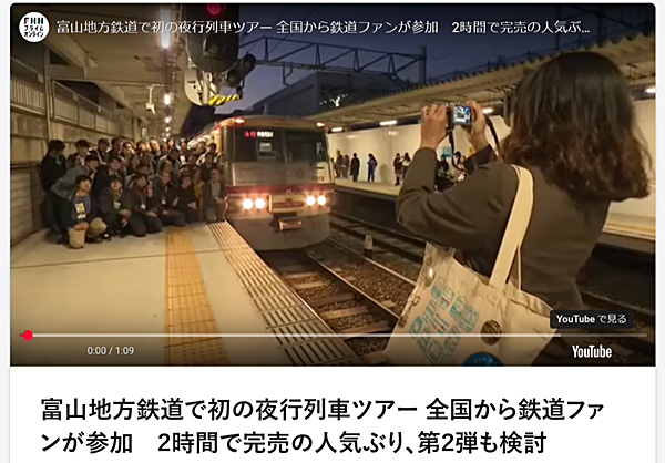富山地方鉄道で夜行列車のツアーが初めて企画され、鉄道ファンが夜の旅を楽しみました。
