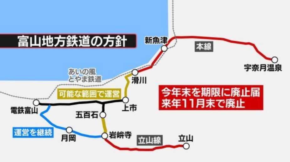 富山地鉄の本線一部廃止 県と沿線自治体が29日に支援表明の見通し