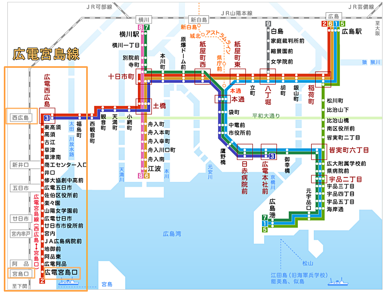 更に2025.3 JR広島駅ビルの完成に伴い、路線変更と共に駅ビル2Fへの広電乗り入れが実現して更に便利になる予定です。