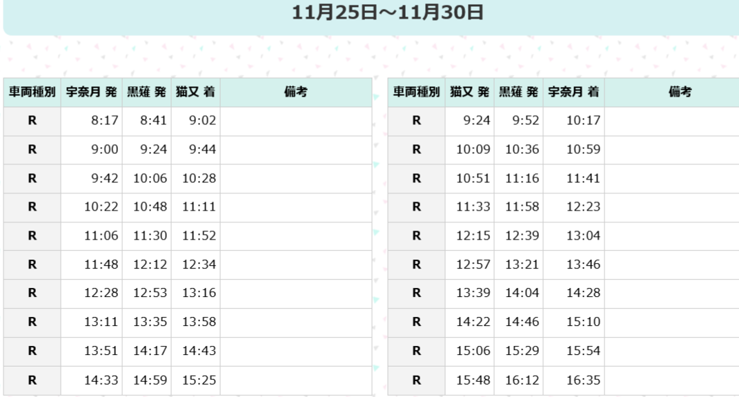 当分の間、終着の欅平までの直通運転は不可能でして、途中の猫又駅までの折り返し運転が続くモノと思われます。