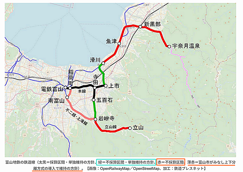 ☝の地鉄・不採算区間・終点の立山、宇奈月温泉は共に富山県を代表する観光地の起点となる重要な地域ではと存じます。