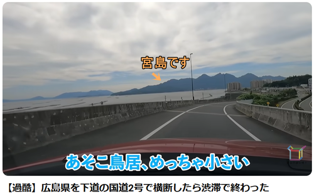 広島市を通過されて西隣の廿日市市に。遠くに宮島が眺められます |