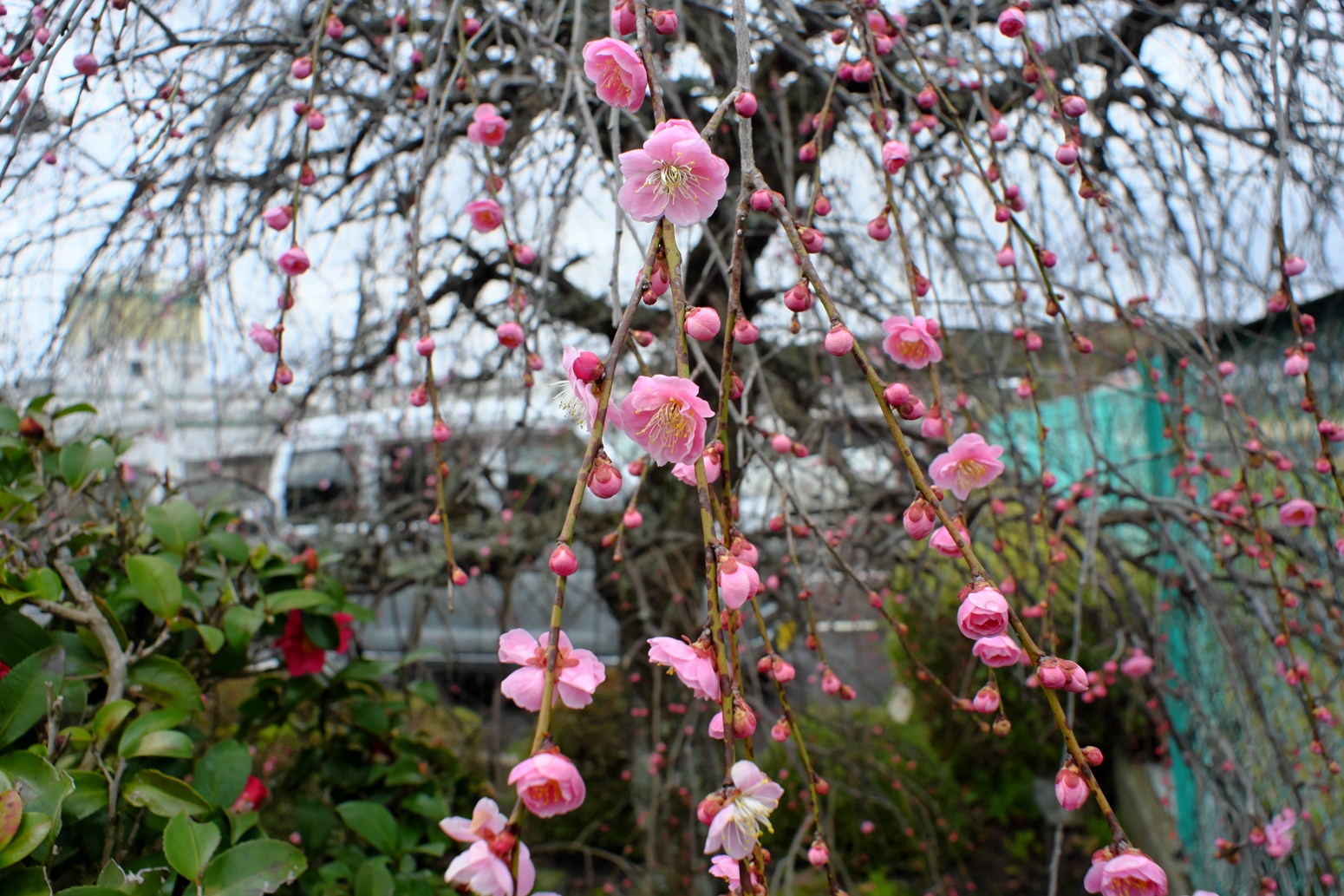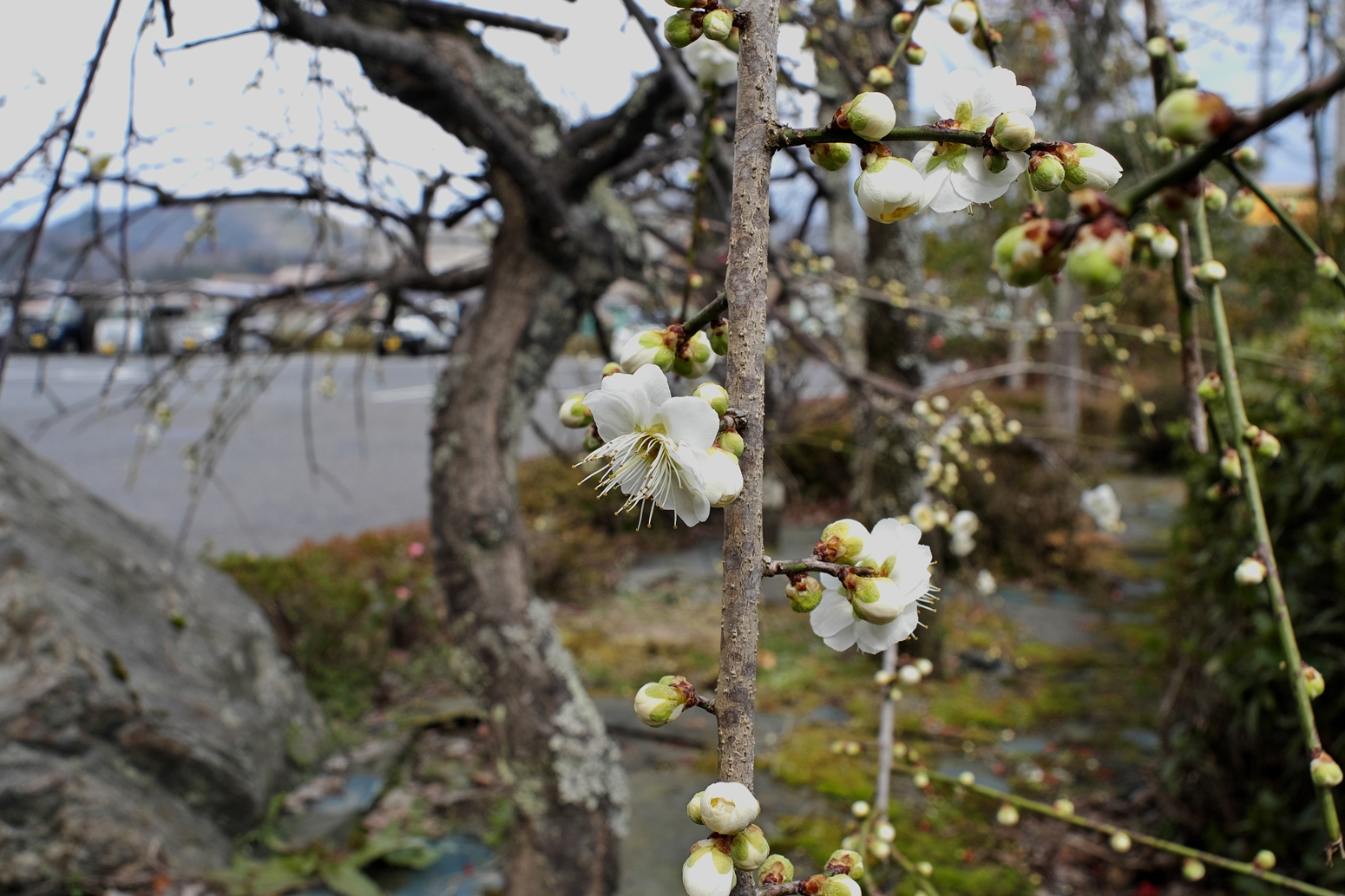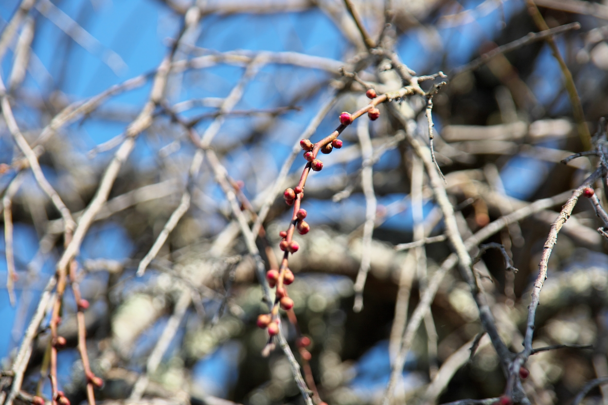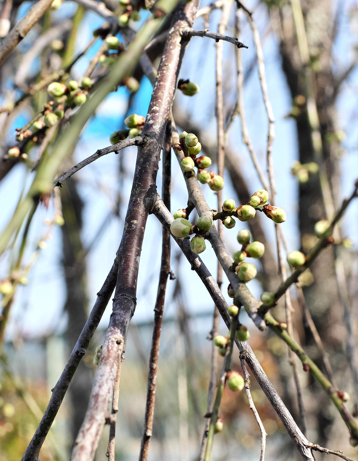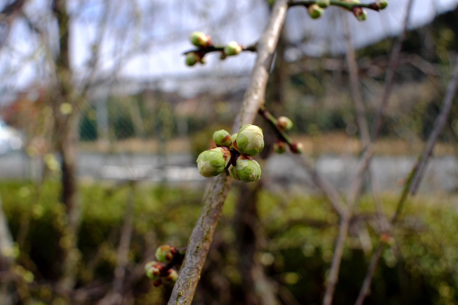 | 梅ですが(広島市内は満開?)当地で日当たりの良い場所で少しツボミが開きかけた状態に |
