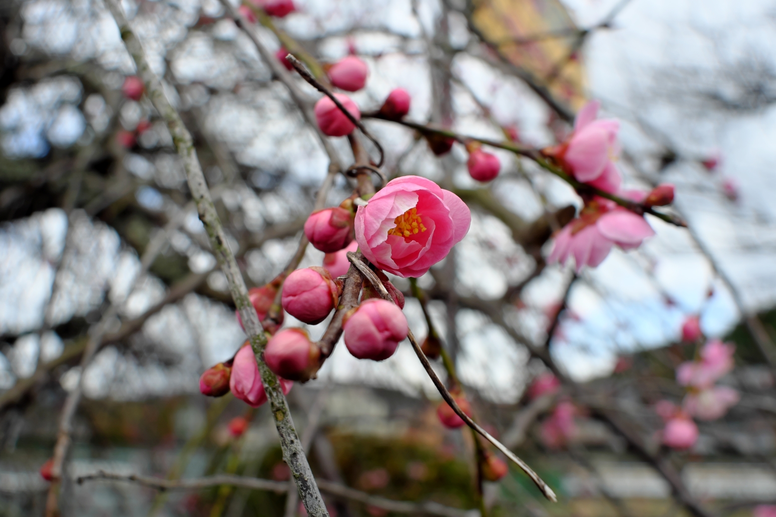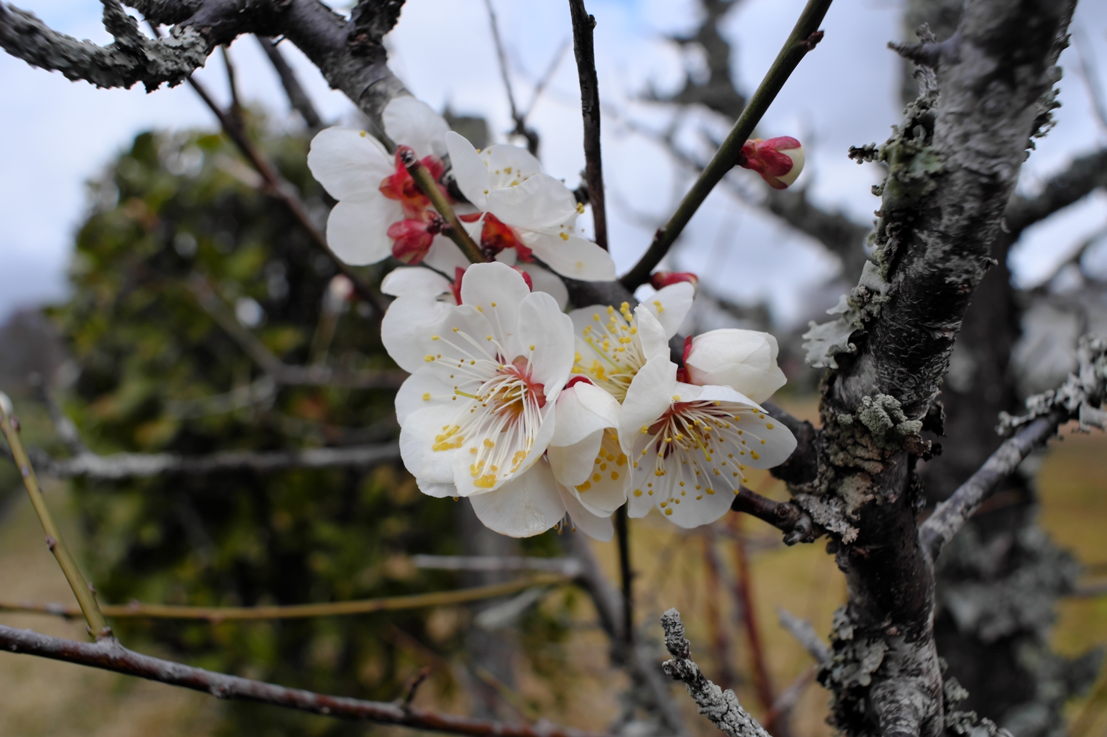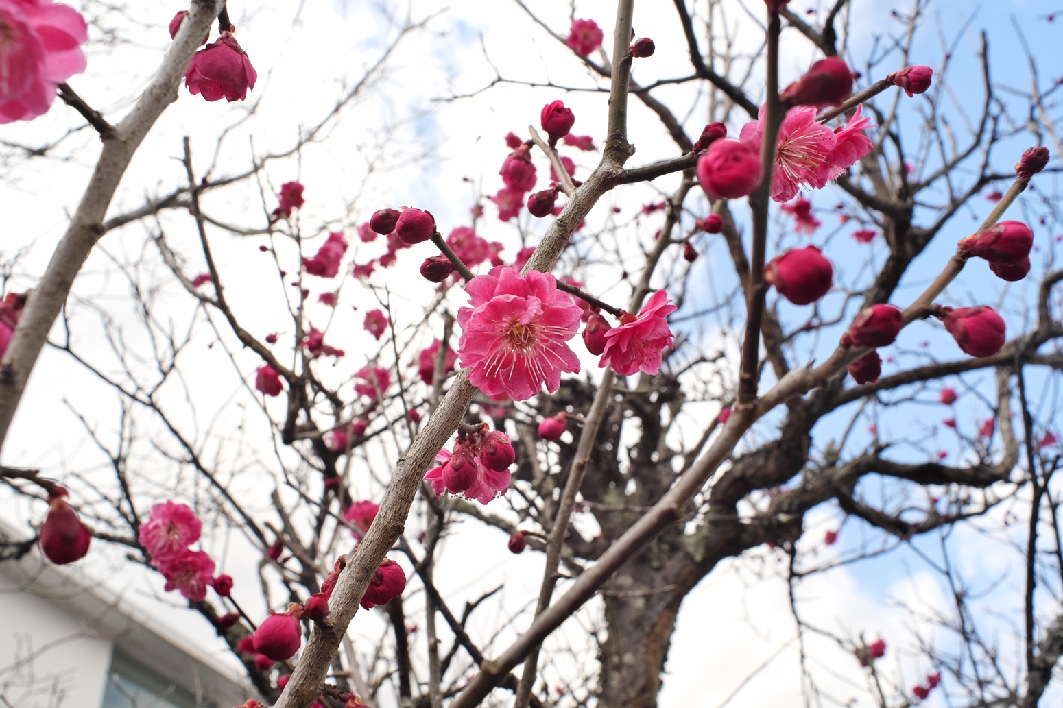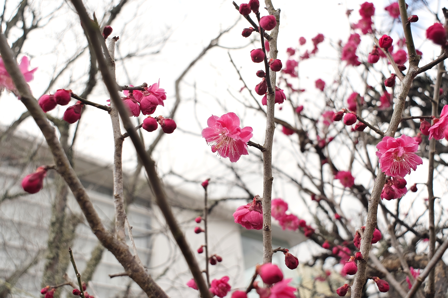 | 梅ですが(広島市内は満開?)当地で日当たりの良い場所で少しツボミが開きかけた状態に |