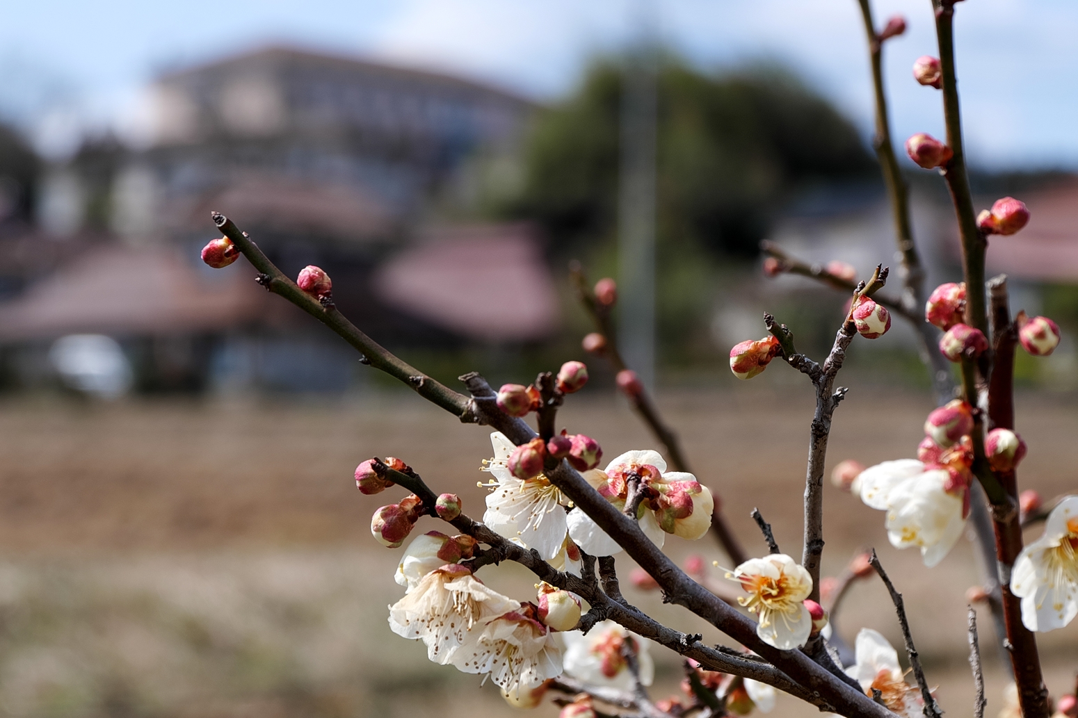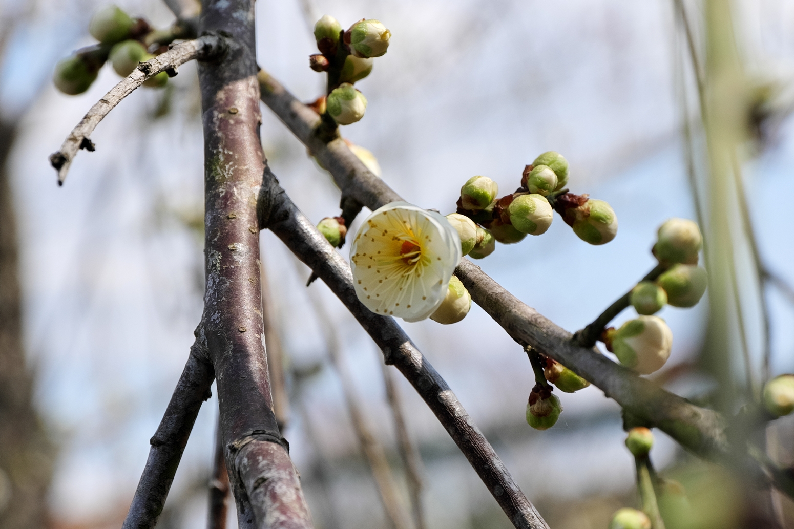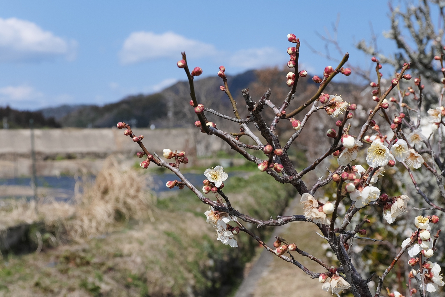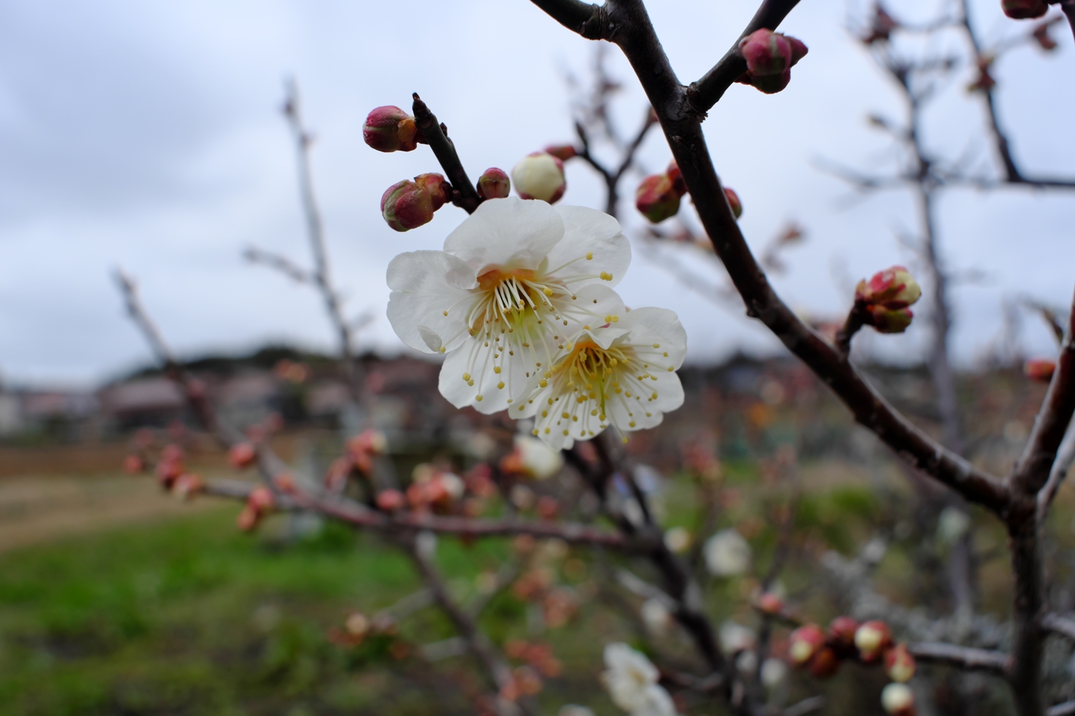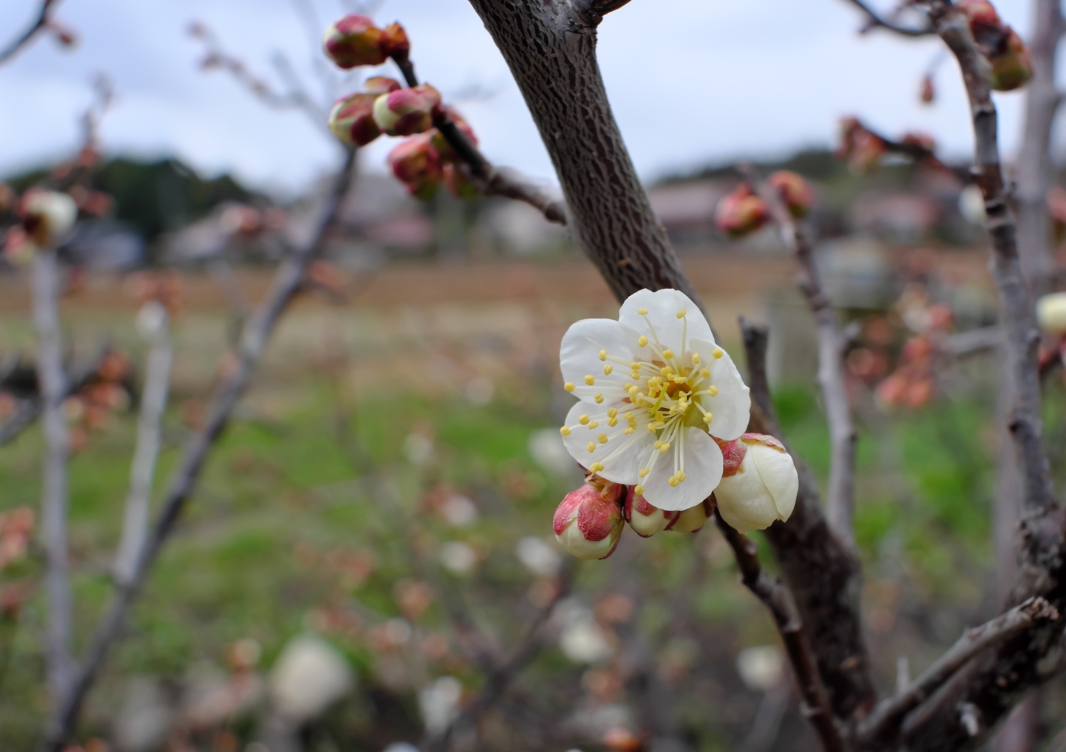 | 梅ですが(広島市内は満開?)当地で日当たりの良い場所で少しツボミが開きかけた状態に |