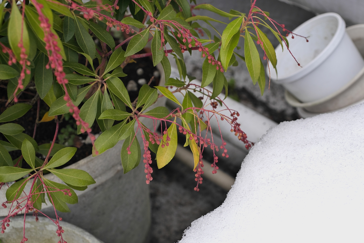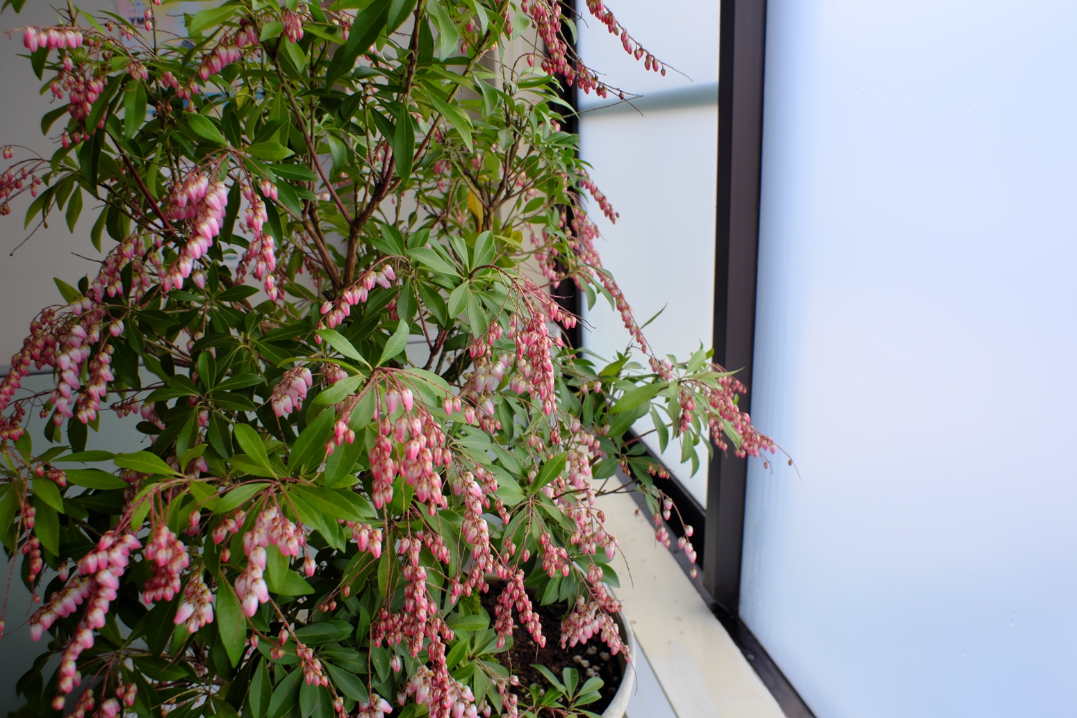 ベランダに置いていたアセビを鉢ごと、屋内に持ち込んで来ました(*^-^*)