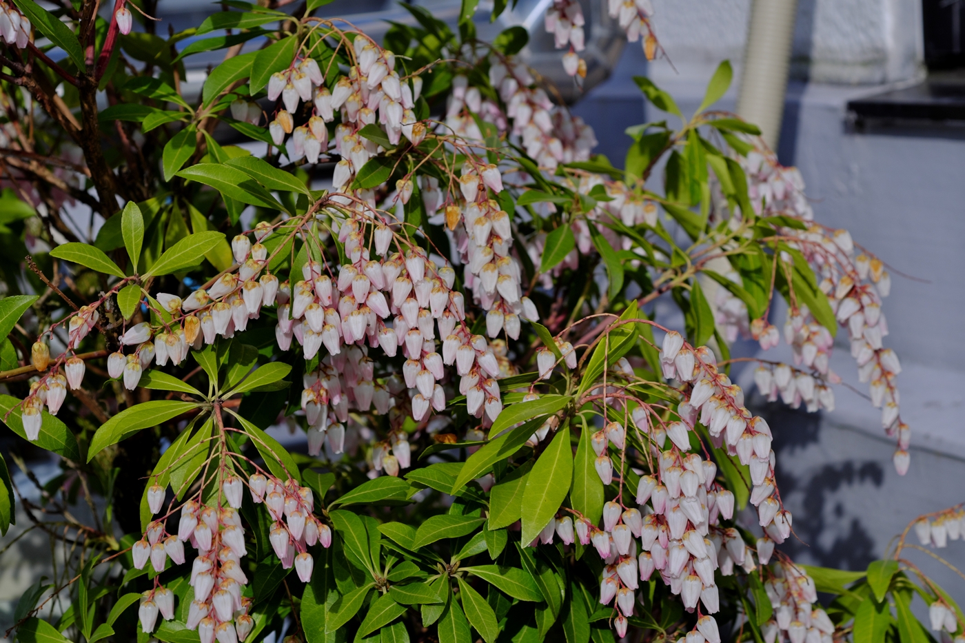 今の時期、宮島には至る所にアセビが生えていますが(有毒なアセビは島内に居る鹿さんたちは食べないので生い茂っているのです)…日当たりの良い場所では2月頃から開花していますので、今は満開状態ではと思います。