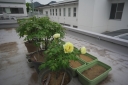 職場ベランダですが、東西方向の建物に接した場所ですので、太陽光が直接当たるのはお昼前からです💦