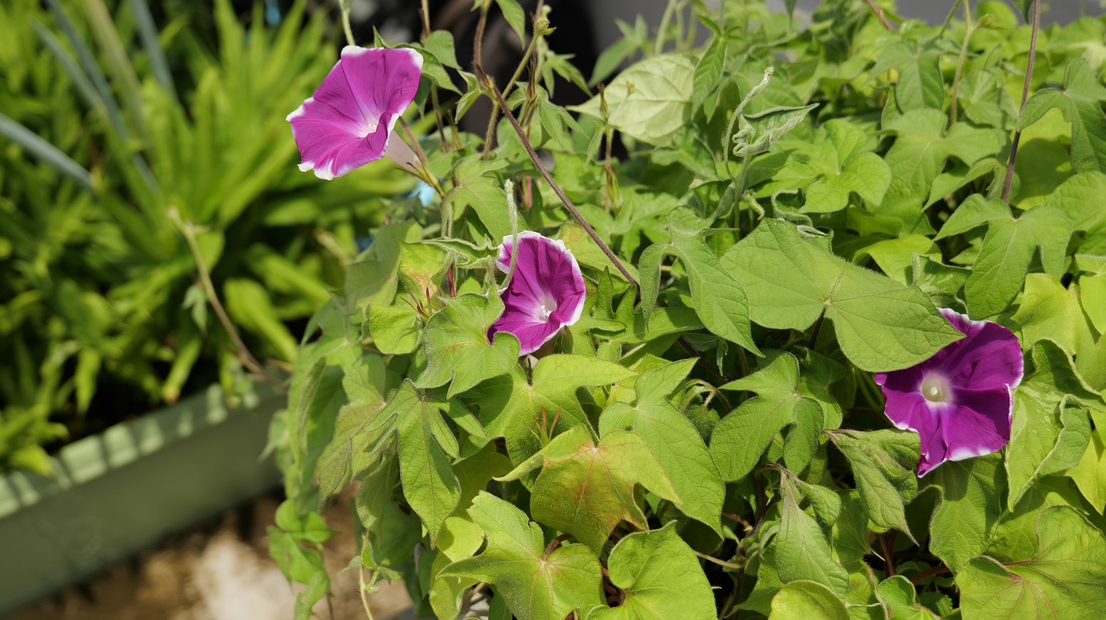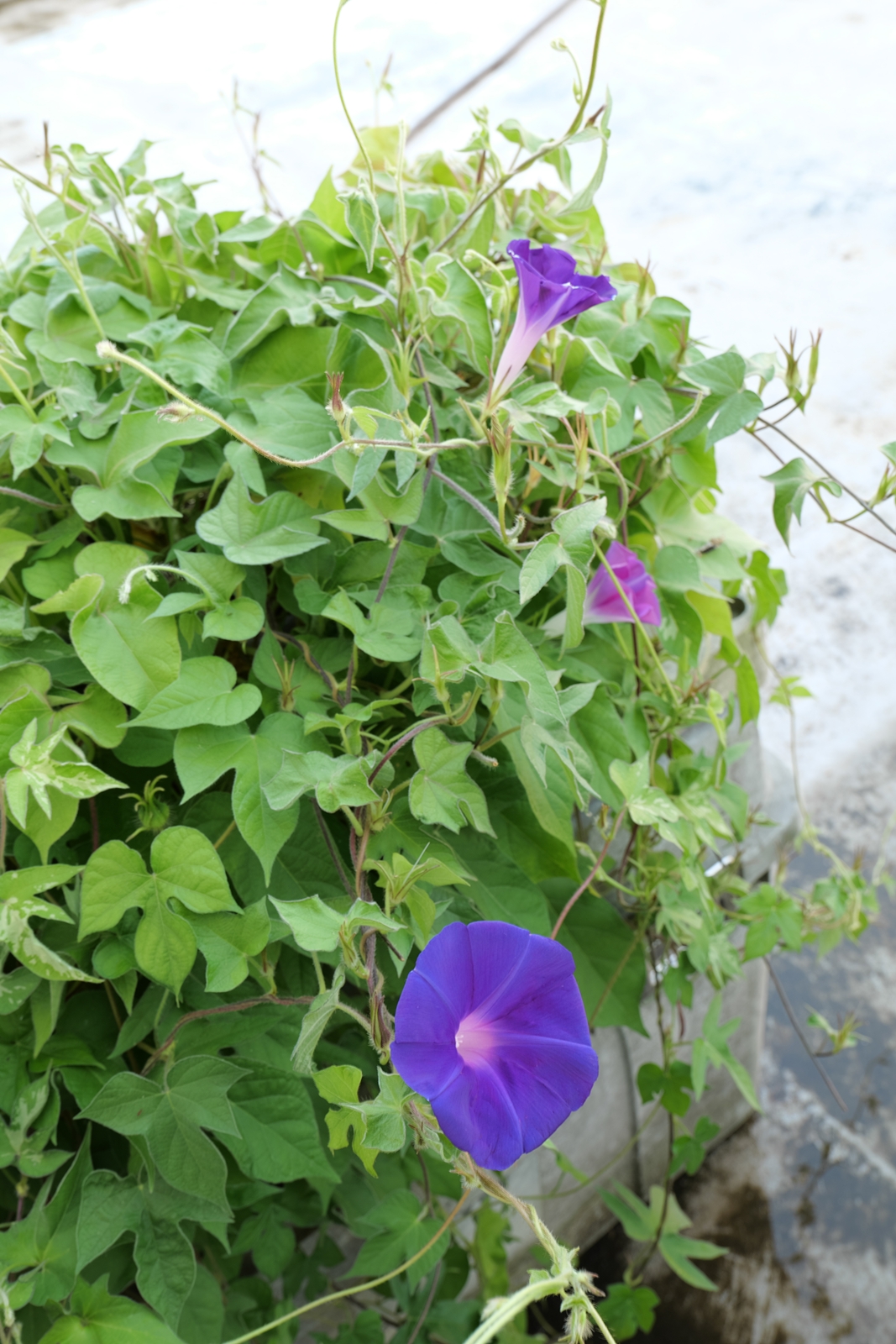 最後の2枚ですが、屋内で育てた間引きした変形アサガオ(固定種)です。