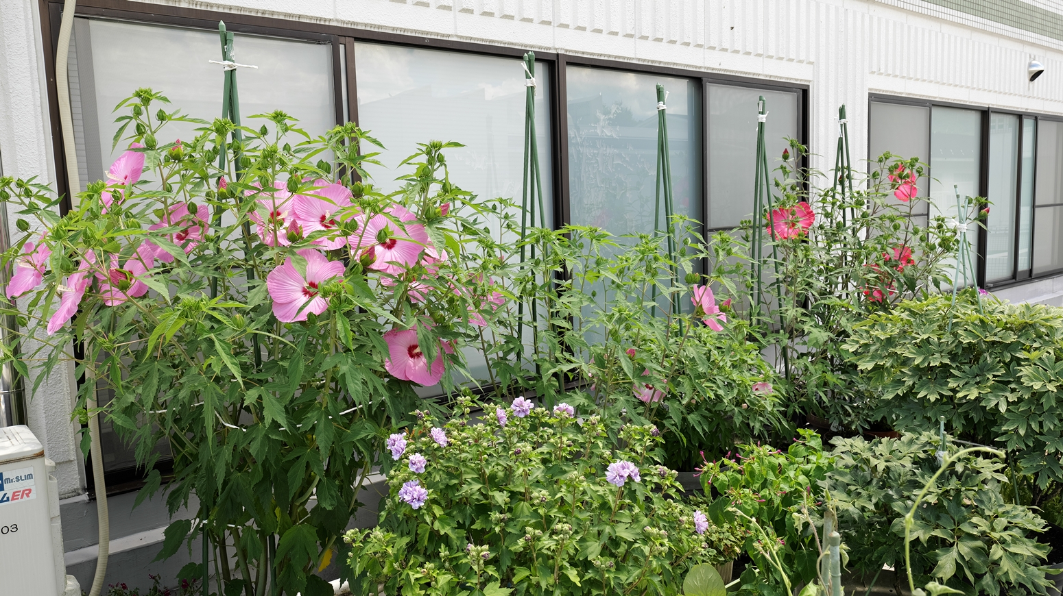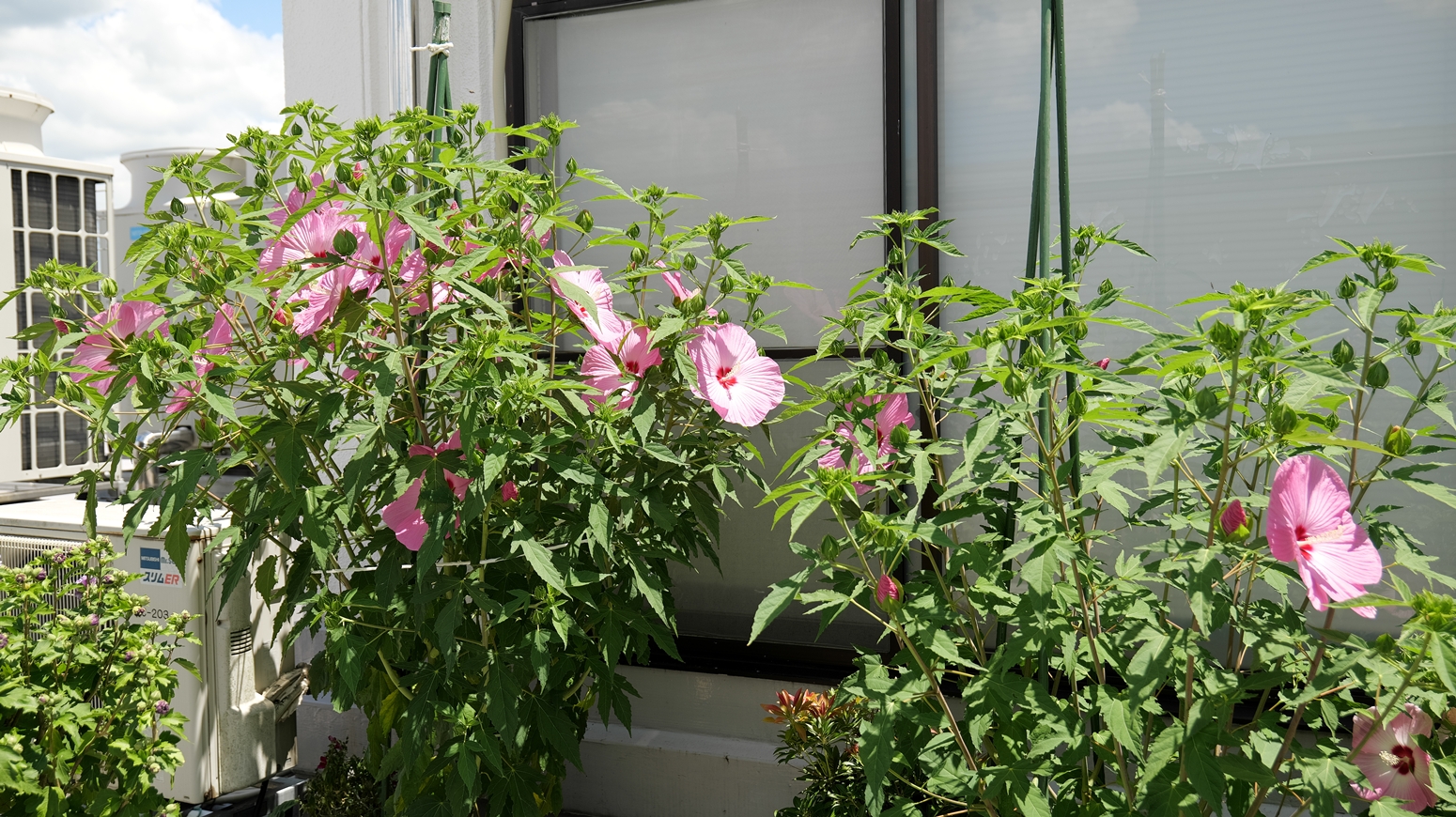今年はタイタンビカスと同様、渇水対策として根元に厚めに腐葉土を敷き詰めましたが、それが奏功した様でして、次々と花を咲かせてくれました。
