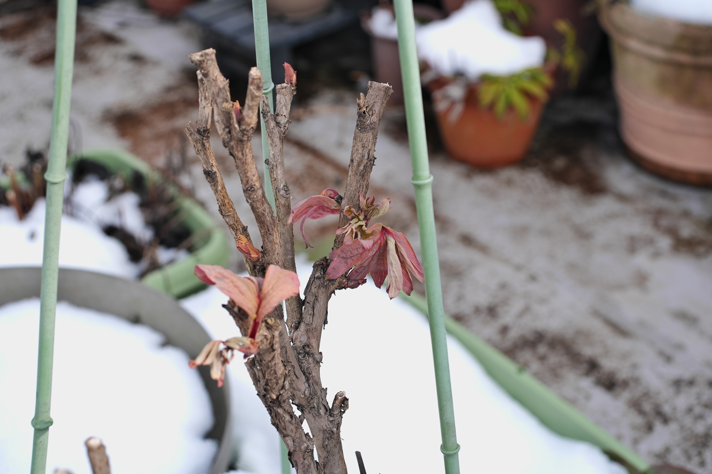 2鉢の牡丹ですが、薄紫の方の花が満開になったようです。(*^-^*)