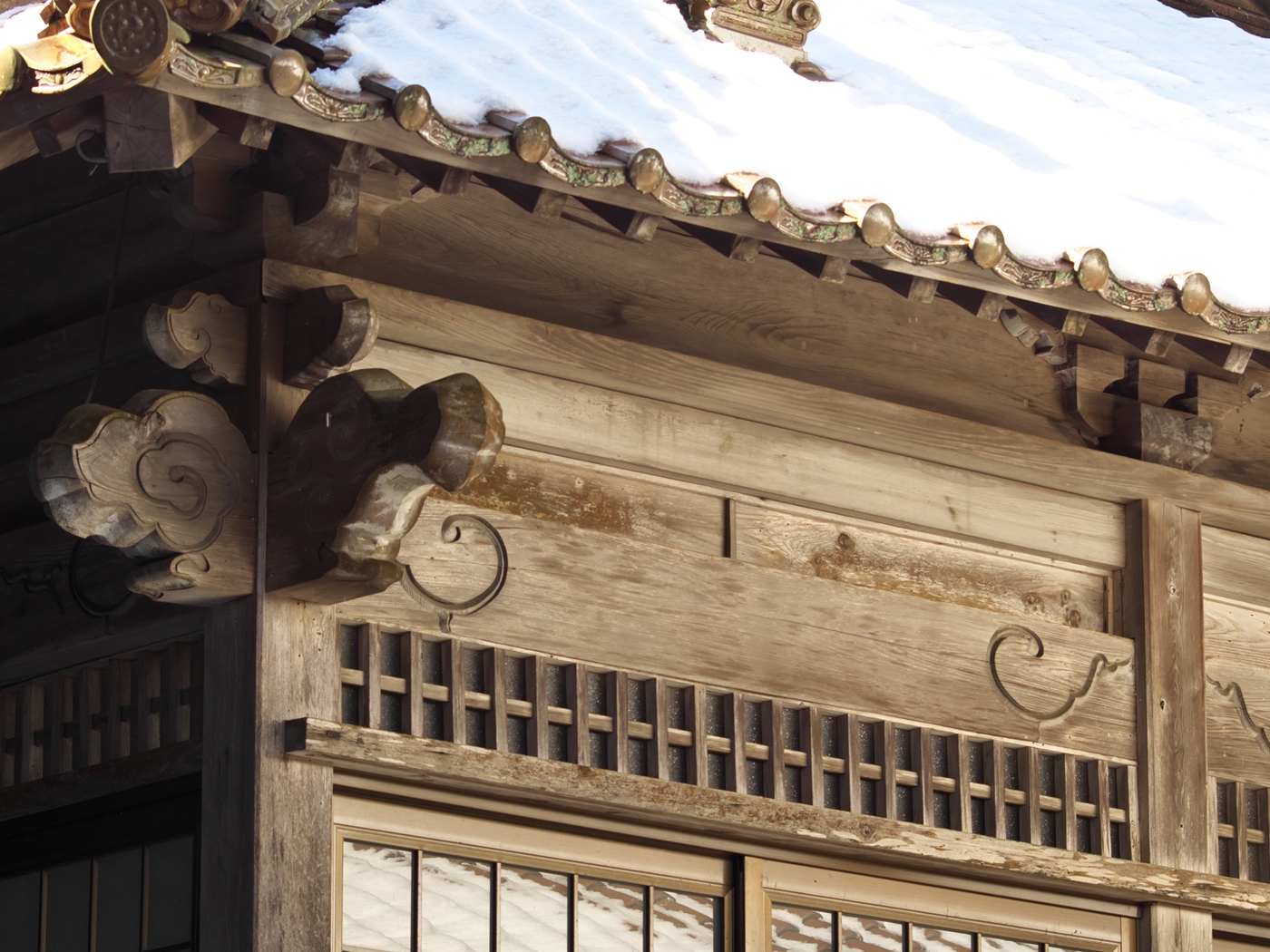 境内には、先日降った雪が解けずに残っており、軒先から解け落ちる水滴に要注意でした。