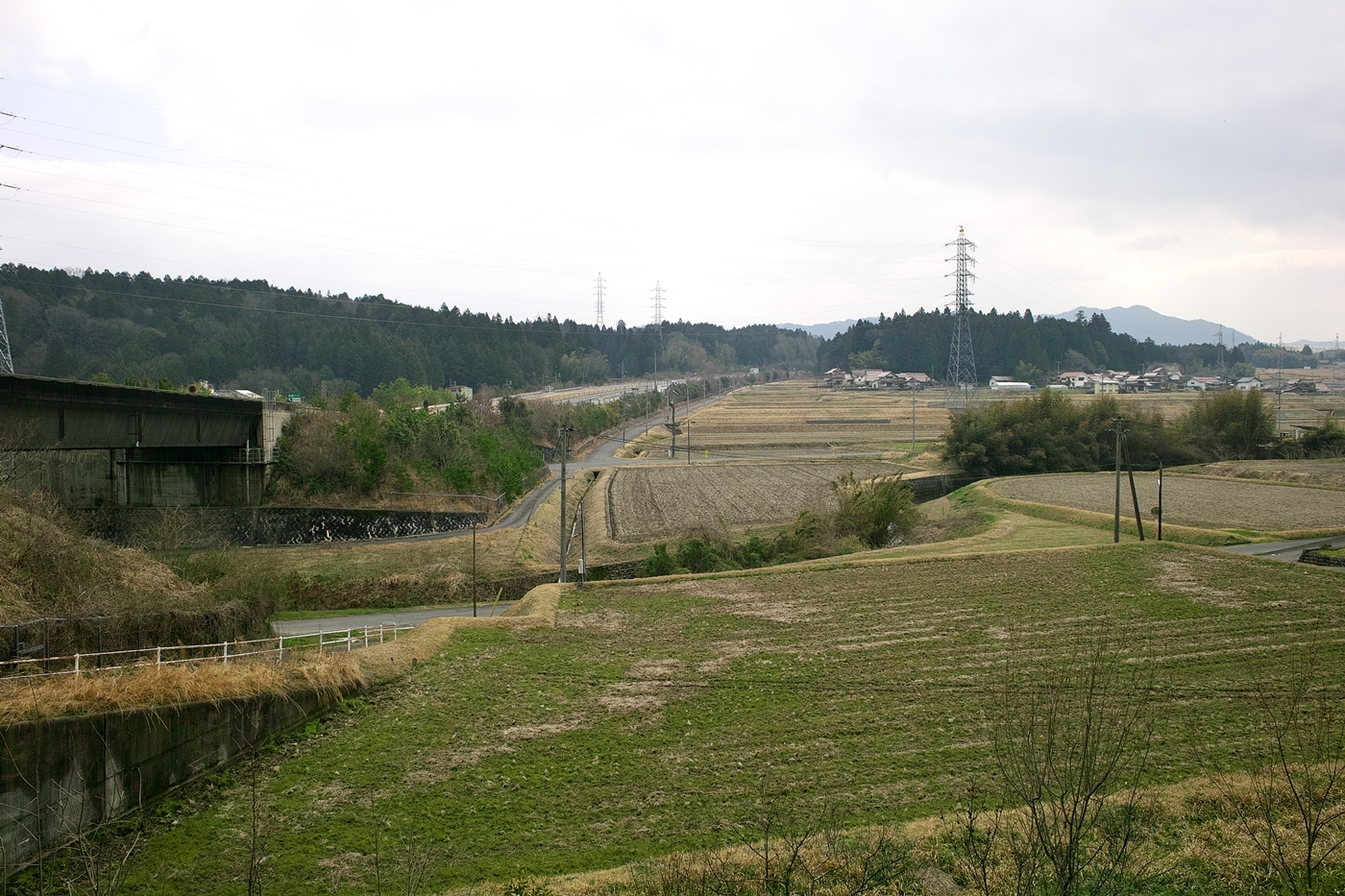 田んぼの畦道に入ろうと、アパート前の道を進みました。