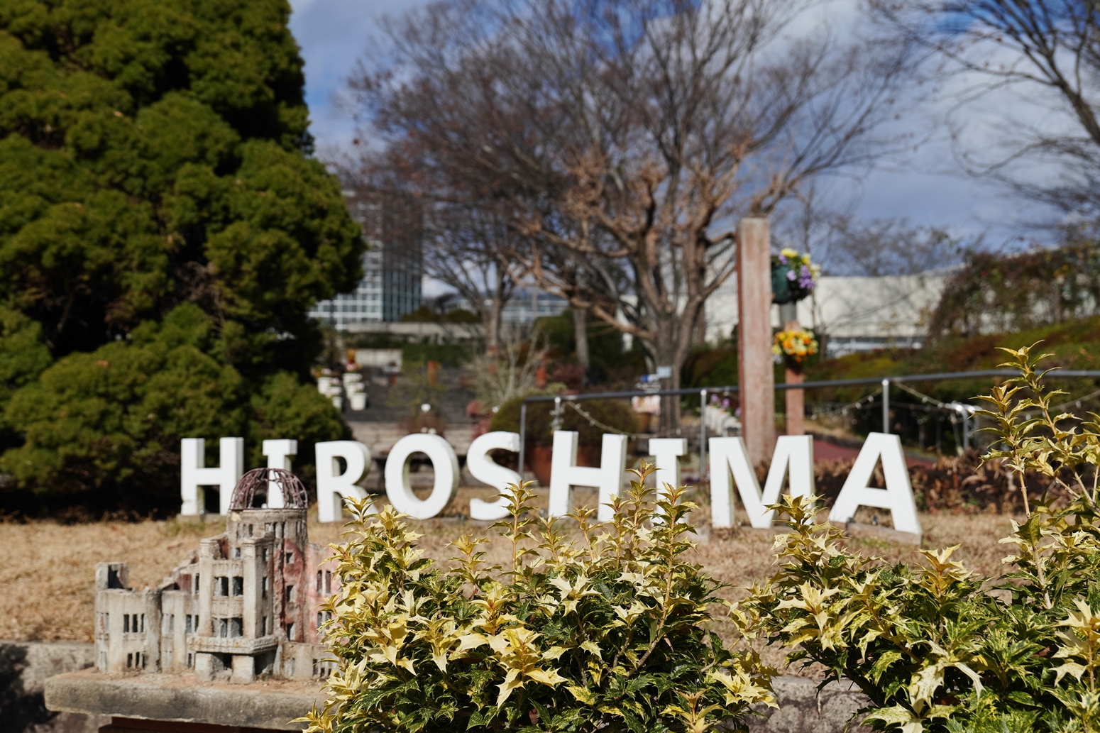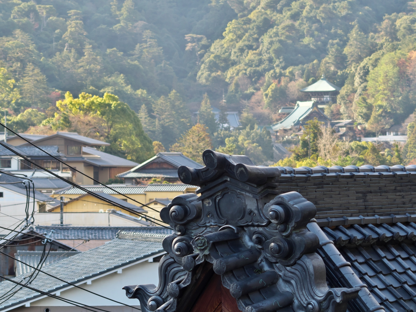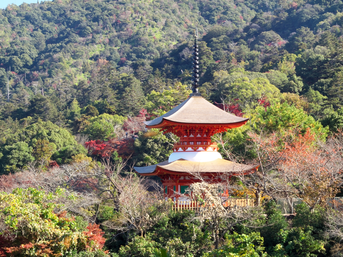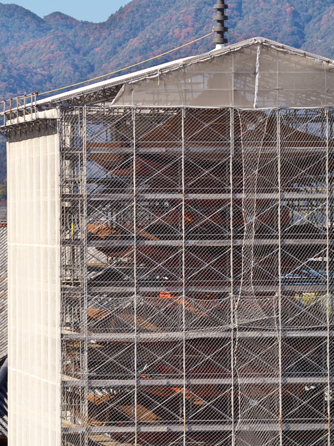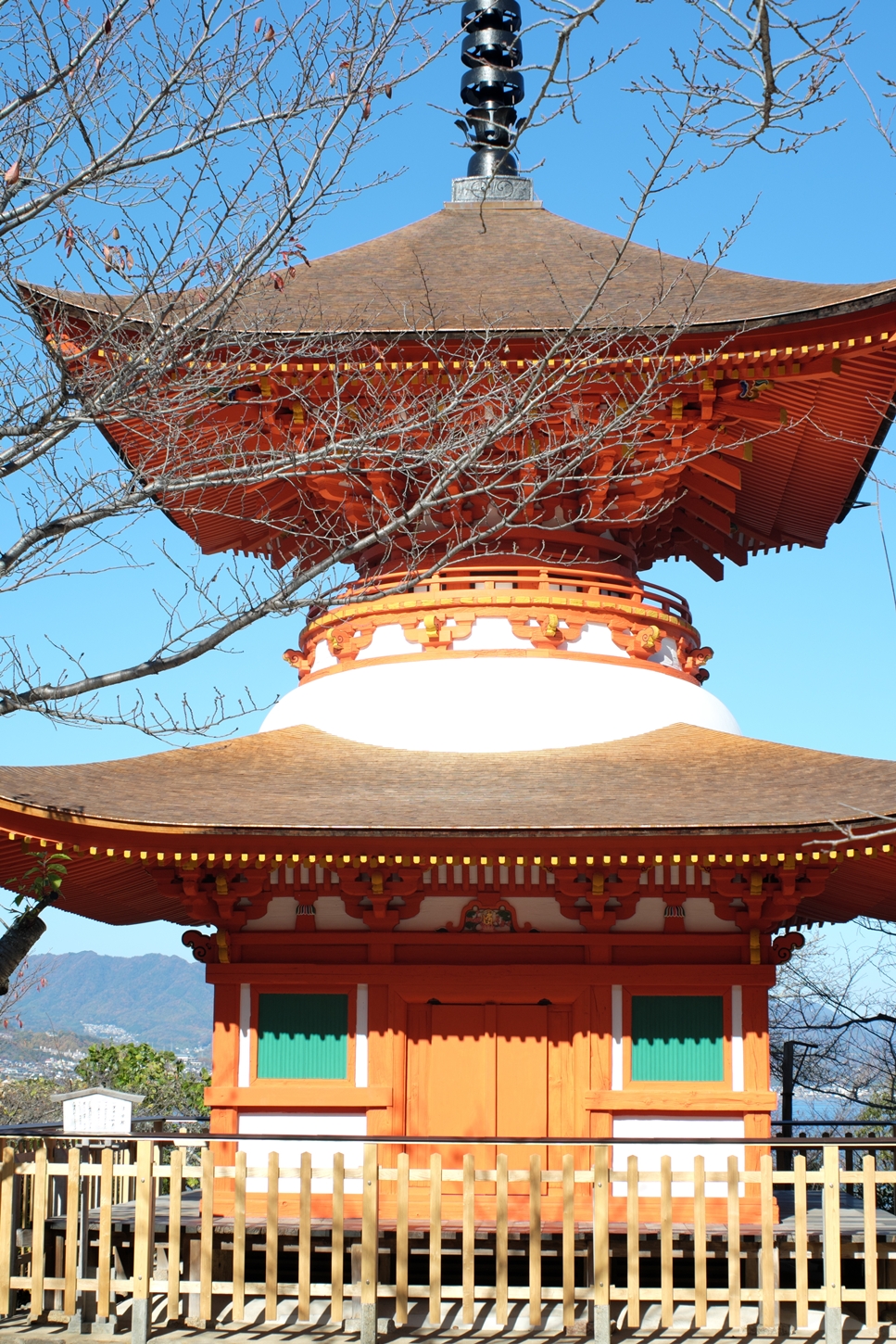 | これこそ今シーズン最後の紅葉でしょうかね・・・・ | 大好きな場所ですが、右手背後には多宝塔周囲に足場が組まれて大修理中です | 遠くに広島市西区井口台の団地の姿が | |||