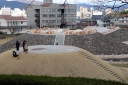 | 主塔の傷んだ部分を寄木細工的に修理を施された箇所を見ることが出来ます | 西松原の陸地に近い砂浜まで歩いて来ました。素敵な眺めです。早起きしてやって来た甲斐が有りました! | |||||