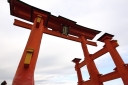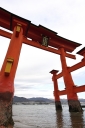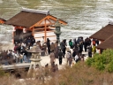 | 干潮前後の時間に来島時は先に大鳥居へ | 干潮から2.5時間後ですが、未だ神社前の砂浜を歩けました | やはり大鳥居の人気は抜群ですね! | 厳島神社入り口からすぐの客(まろうど)神社、檜皮葺の屋根の修理を終えて美しい | ||