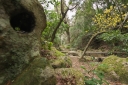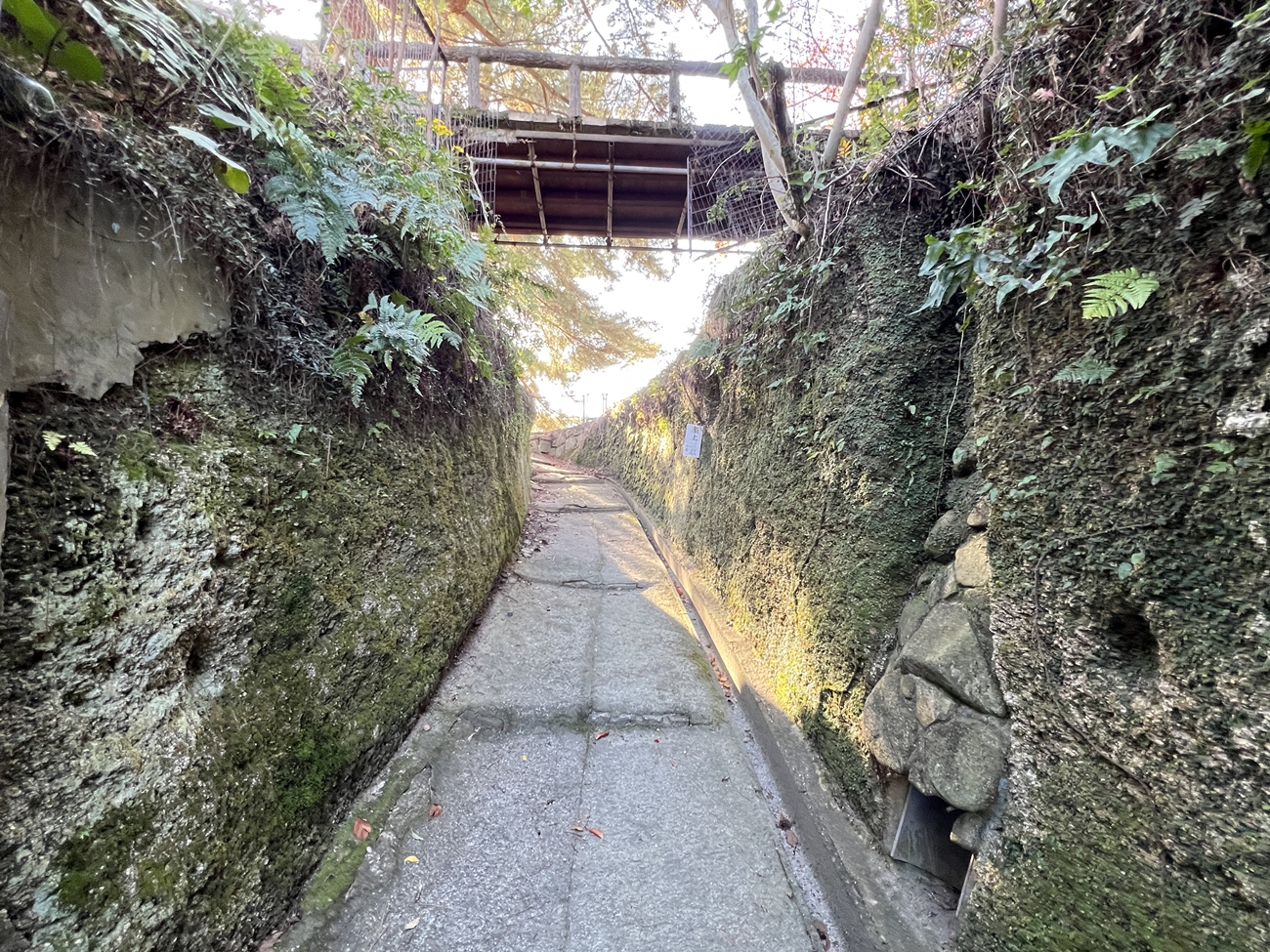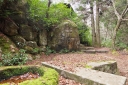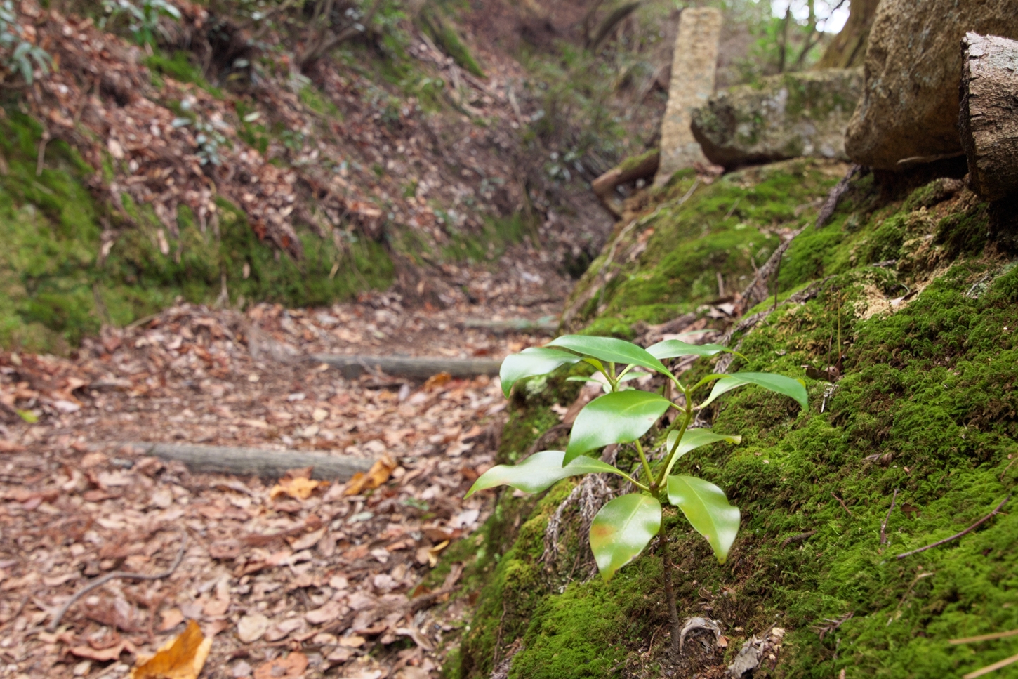 | 大きな樹の切り株に色々な種類のコケが群生しています | ㊙展望台への入り口ですが、右側の土止めの板塀が次第に崩されて来ました | 紅葉谷川です・・・ | ||