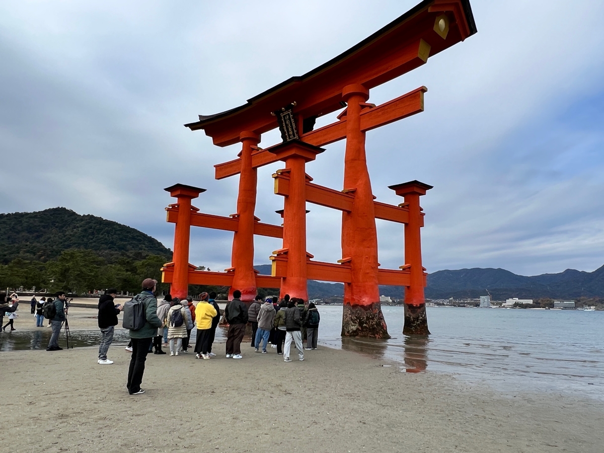 何と言っても海の中にそびえたつ大鳥居の人気は絶大ですね。何重もの人垣が出来てしまいます | 皆さん、大鳥居の真下では満面の笑顔&ハイポーズ📷 | 協調性ゼロの私・・・・自撮りアルのみジャ! |