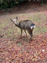 | 左奥の立派な角をお持ちは現ボス鹿さま・・・・? | 神泉寺跡入口脇のアセビ、白花の開花ですね | 北風がブロックされ&日当たりの良い当地、アセビの花が美しいですね | 桜の樹、葉っぱが無くなり見通しが良くなりましたね。でもちょっとだけ寂しさが | 立派な紅葉も先週が見納めとなりましたね。でもまた来シーズンが楽しみです | |