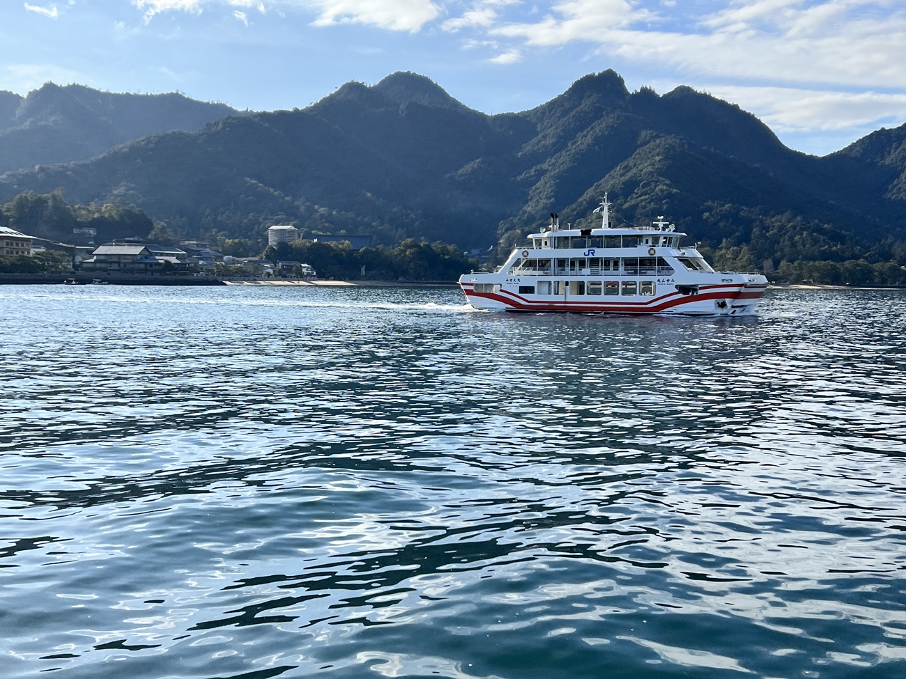 宮島に行くフェリー甲板では、冷たい風に吹かれてちょっとしんどかったですね💦