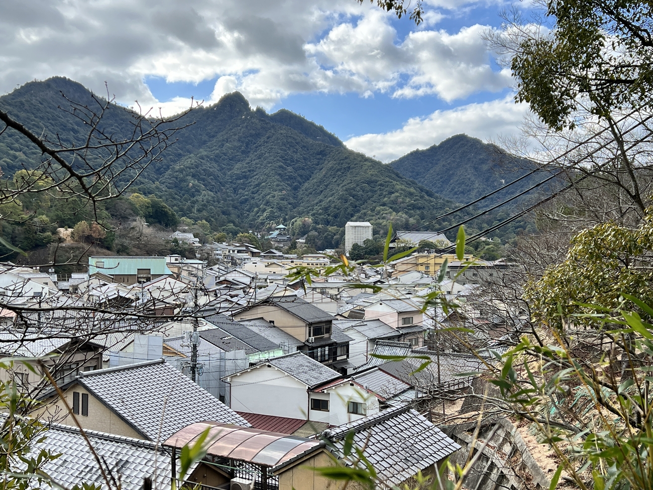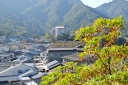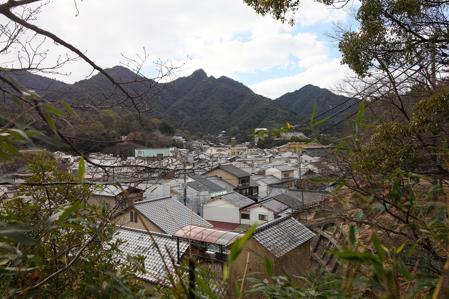 | 正面の桜の樹の向こう側のベンチが私の定番の休憩場です | ここからの東町の眺めが大好きな景色の1つです | 存光寺さまの山門が新調(修復?)されたのでしょうか、設置工事がなされていました | 山辺の小径中.唯一の木漏れ日に映える苔むしたareaです | 画像正面,やや上部の開けた所が,先程の要害山・休憩地です | 眼下のシャレた4階の建物は宮島町商工会さまです. 土曜日(休館日)日直の方に無理矢理お願いして”たのも船”を購入させて頂きましたm(__)m |