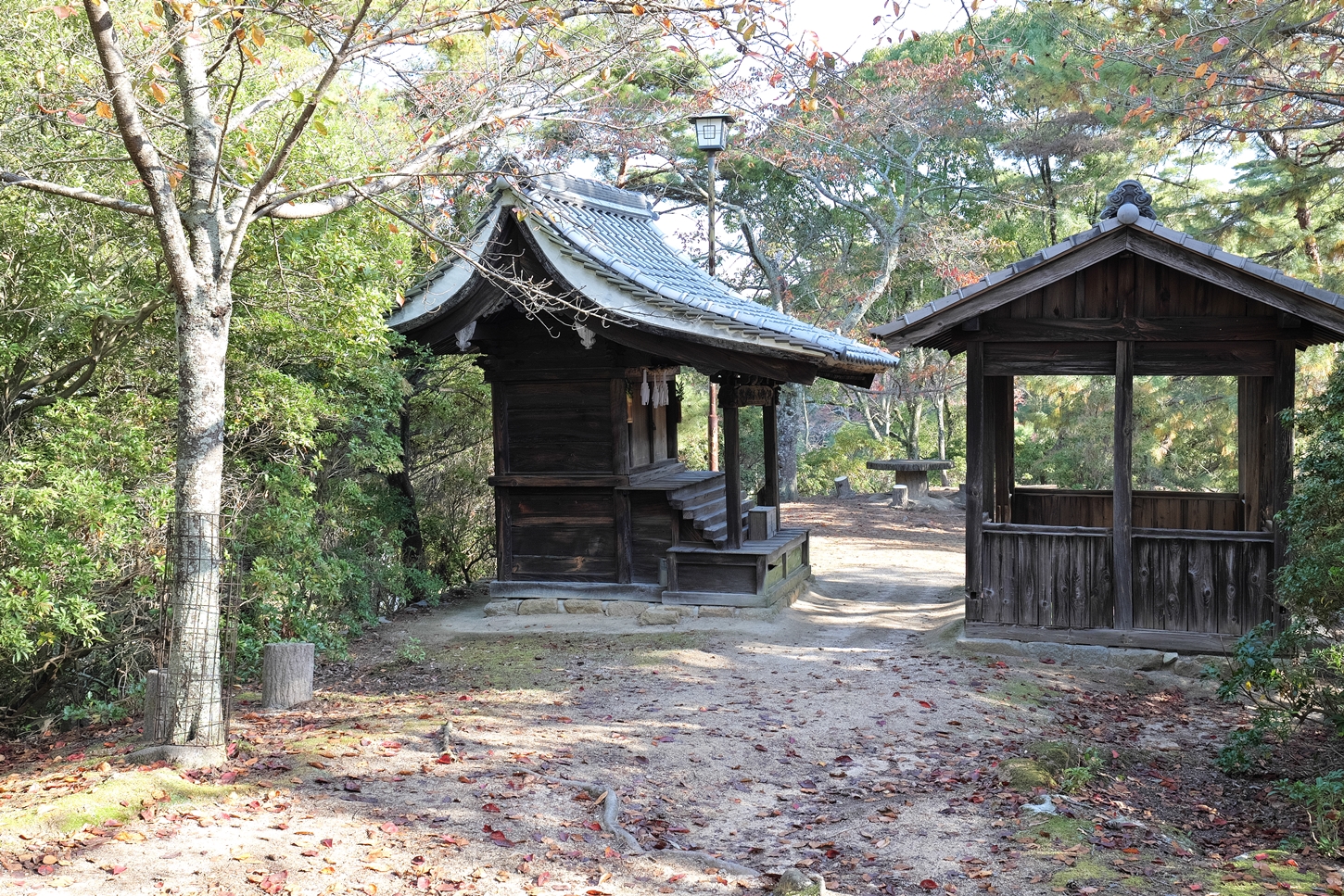 | ㊙展望台に行く途中、今日は北之神社さまに・・・ | closed areaにて鹿さんfamily?.がゆったりとお過ごしに | 北之神社さま本殿の左奥にお地蔵様が祭られています。更にその左後方は獣道でして、うぐいす歩道から駆け下りて来た鹿くんが写っています | 神社さま本殿は勿論、こちらも美しく整えられています。宮島の方々の信仰心の深さを垣間見るような気持ちに | 180度、反転しまして海側の風景です | 今来た小路は通らずに(獣道では無くて)人間様用の小路&鉄製の階段を進めばうぐいす歩道に。右側の舗装路はうぐいす歩道、左側は至 神社さまに |