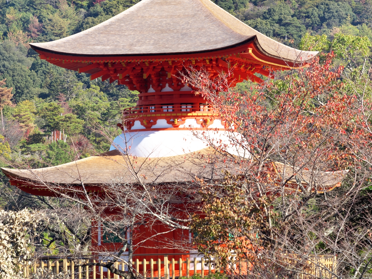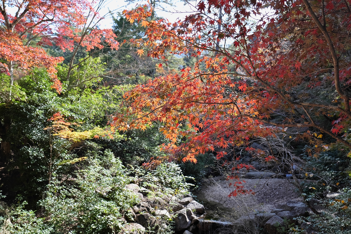 | EOS-RPフルサイズですがx1.6倍でクロップ撮影がOKです | あせび歩道に行く近道の途中・景色です | 多宝塔側ですが、多宝塔は現在修復中で、3年後に完成予定です | 紅葉谷川に・・・ | ||