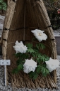 | 日当たりの良い場所のアセビ...一輪だけ開花していました\(^o^)/ | 大松明がスタンバイしていました. 観光客の皆さん、ご存じ無い方が大部分でしたが当たり前ですよね💦 | 31日の晩が待ち遠しいですよね(*^-^*) | こちらはご家庭用のミニサイズの松明. でも造りは手間が掛かり色々と工夫されているのですよ | 松明ですが、色々な方々が製作されています そんな中で伝統技術の継承を勧める岡田様がいらっしゃいます |