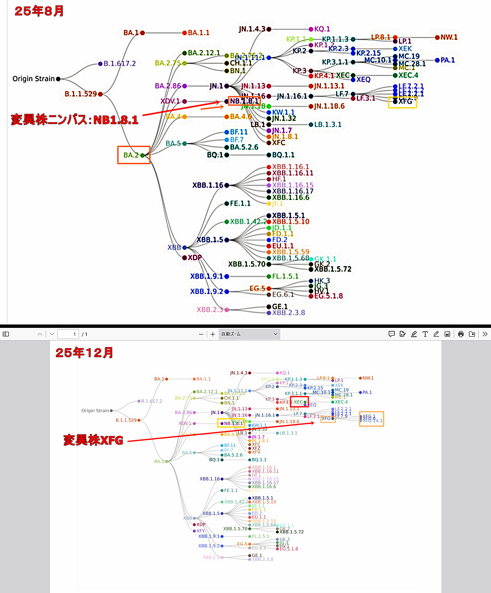 当時の変異株:NB.1.8.1と現在流行中のXFGとの位置関係