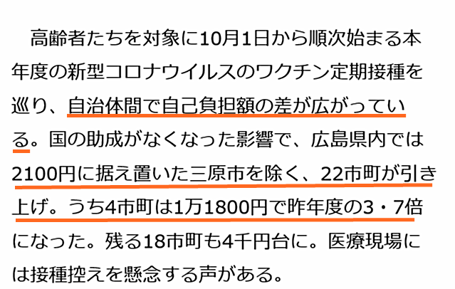 最後にワクチン接種時の費用に関してですが、これまで公費負担が有った高額なコロナワクチンの接種が問題になるのではと存じます。